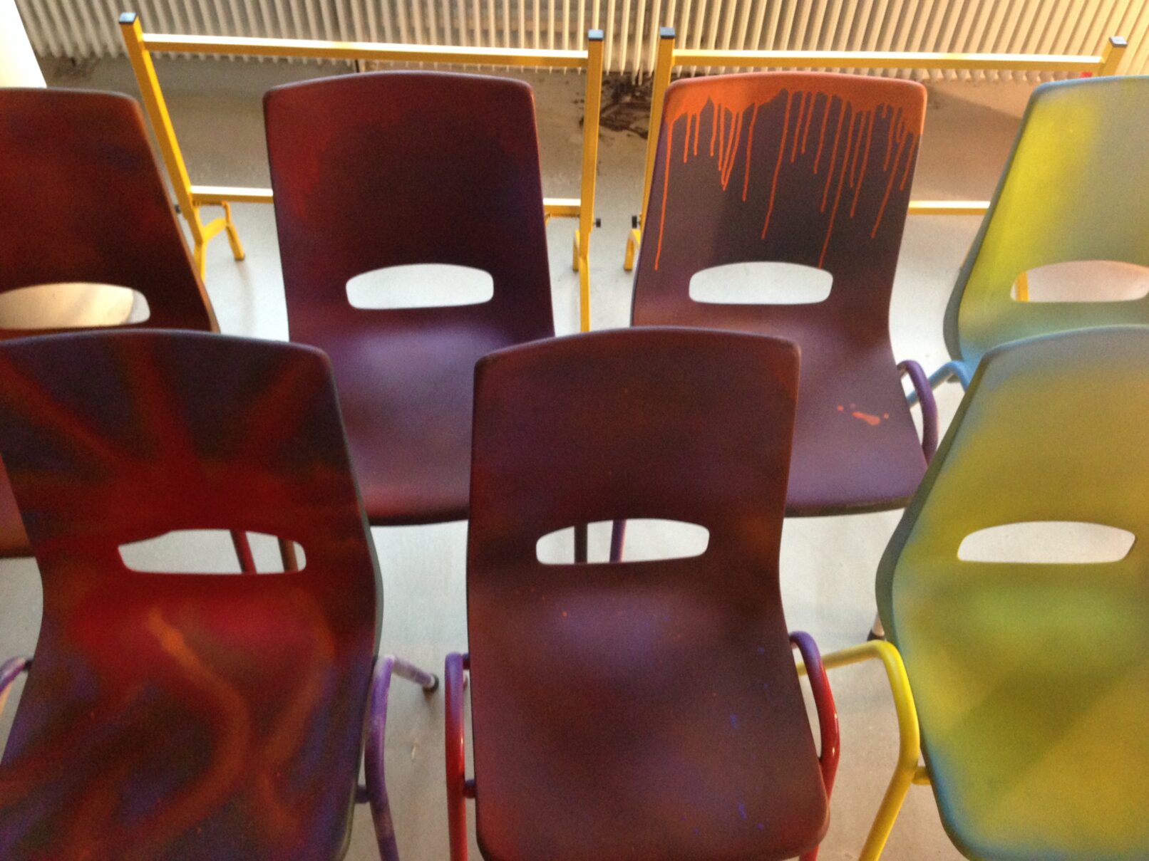 – Making an LAS Learning Space. Joyfully dismantling E.11 Prototype for a circular projector rail, Ivar Troost, 2015. Spray painted 2nd hand chairs by Laura de Kreij. Open source furniture (scale model from blue foam). Design by Enzo Mari. Making THERE with bacteria culture in the UCR Life Science lab, Nele Bartsch, 2015