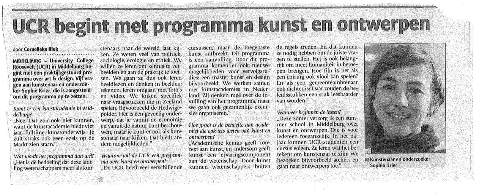 CORNELIS Els, DE MUIJNCK Catelijne, “Interview met Sophie Krier” in: From a University of the Arts to a Pluriversity of the Arts, Arnhem: Apria/ArteZ, published Feb 16, 2023. Online: https://apria.artez.nl/interview-met-sophie-krier/