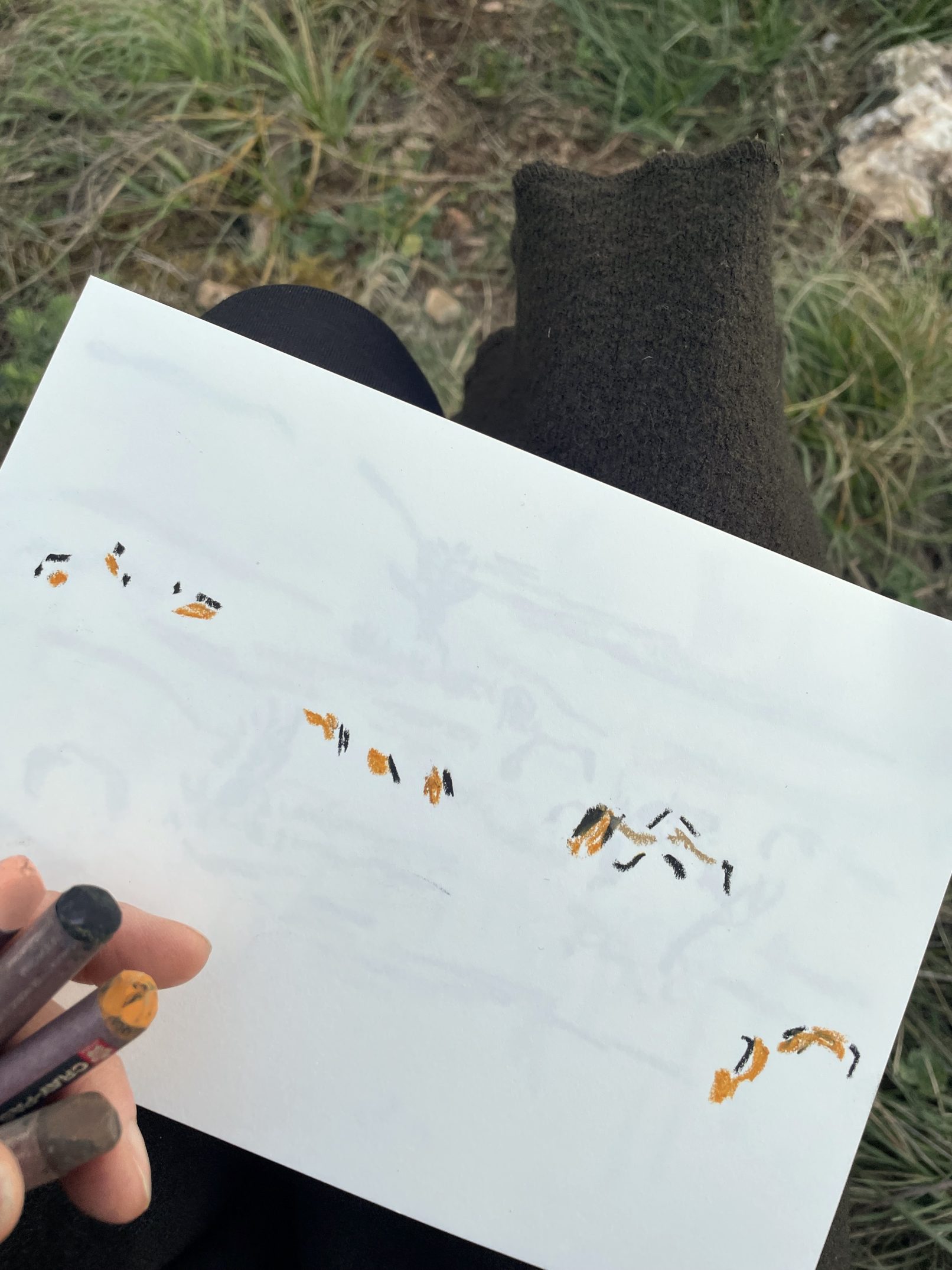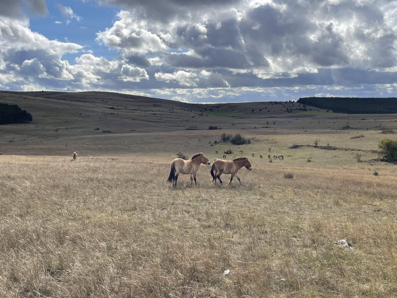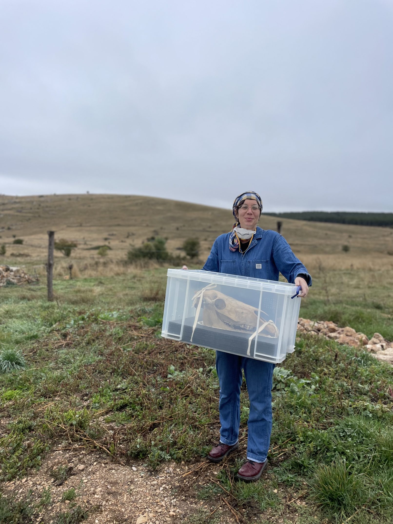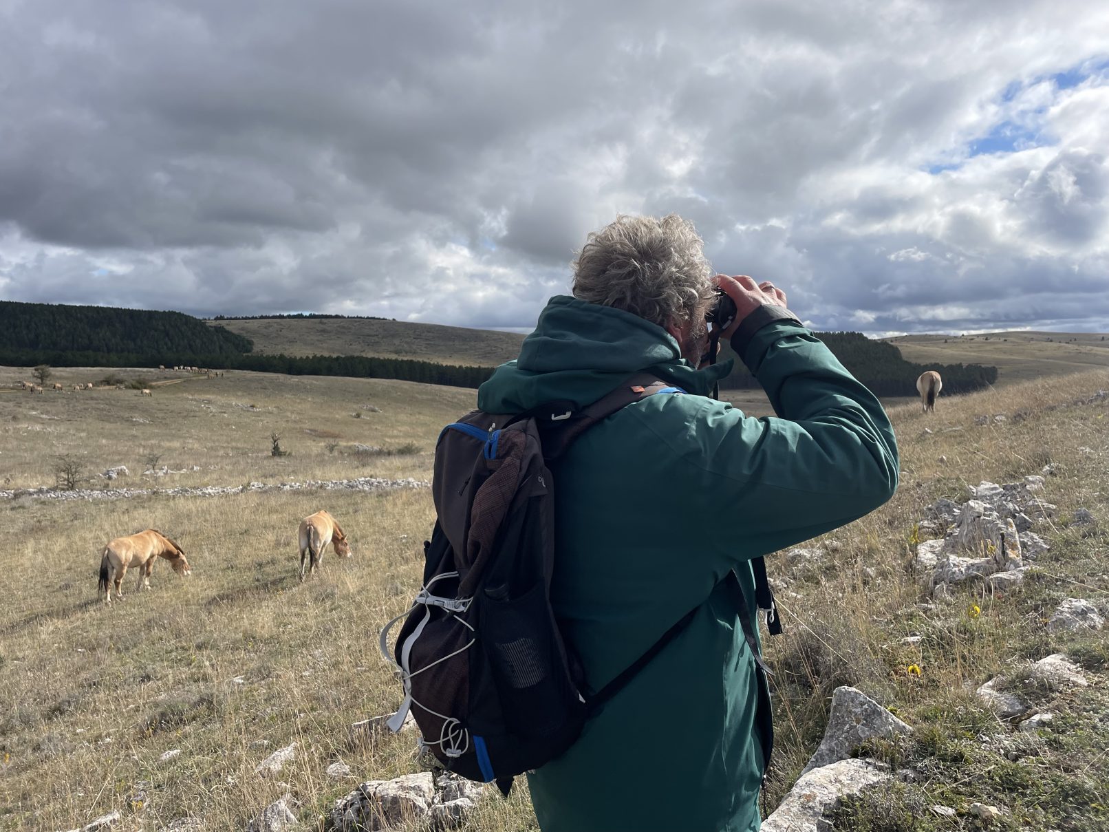 Peut-on imaginer une manière d’être au monde qui serait une forme de « co-naître », de naître ensemble ? Et, si le cheval pouvait s’appartenir à lui-même, qu’aurait-il à nous apprendre ? Je suis venue en résidence pour rencontrer ces équidés qu’on appelle Przewalski, du nom de l’explorateur russe d’origine polonaise qui les a « découverts » en 1881. Considérés éteints à l’état sauvage depuis 1969, ces chevaux d’apparence trapue, robe baie et crinière en brosse, ont été l’objet de nombreux programmes de réhabilitation depuis les années 1990. Aujourd’hui, un troupeau de 41 chevaux, constitué à partir d’individus ayant survécu en captivité, évolue en semi-liberté sur 440 hectares du Causse Méjean (mégio en parler local ; bien laisser le i creuser la 2e syllabe).