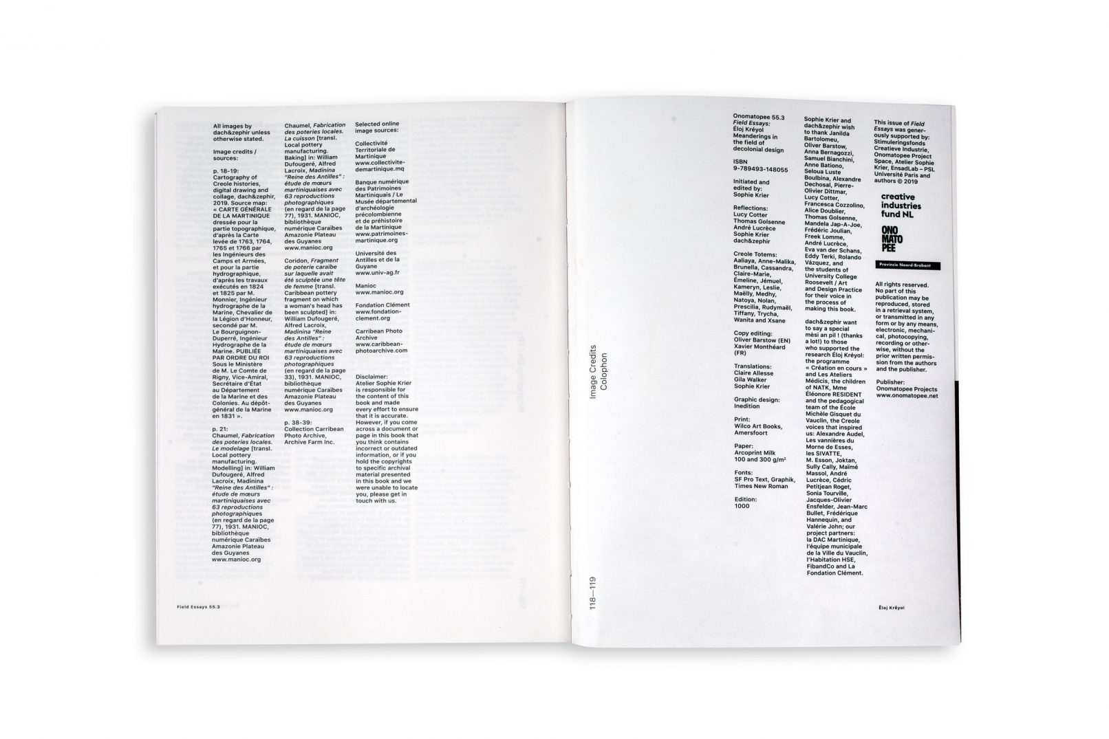 This issue of Field Essays was generously supported by Creative Industries Fund NL, Onomatopee Projects, Provincie Brabant, Atelier Sophie Krier, EnsadLab – PSL Université Paris and authors © 2019. All photos by Onomatopee. Graphic design by Inedition