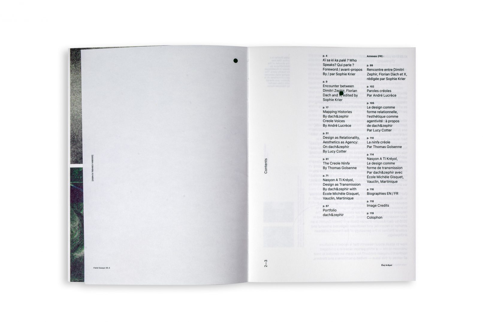 The fourth issue of Field Essays brings to the fore the research Éloj Kréyol by design-duo dach&zephir (Florian Dach and Dimitri Zephir). Initiated in 2015, Éloj Kréyol is an attempt to reconcile, and reactivate neglected artisanal and cultural lifelines in the genealogy of the French Caribbean archipelago.